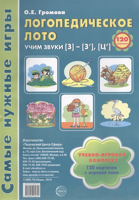 Вашему вниманию предлагается Логопедическое лото. Учим звуки [З] - [З'], [Ц']. Учебно-игровой комплект (120 карточек + игровое поле)