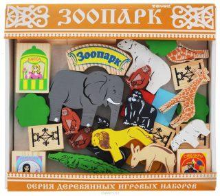 Деревянный конструктор "Зоопарк" состоит из 39 деталей, в процессе игры ребенок познакомится с его обитателями. В комплекте представлены разнообразные фигурки животных: жирафы, белые медведи, слоны, морской котик, обезьяна, крокодил, семейство львов и другие обитатели зоопарка. Помимо животных, в наборе можно найти разнообразные элементы для создания ограждения животных, озеленения территории, строительства кассы. Конструирование поможет ребенку развить воображение и логическое мышление, разрабатывается мелкая моторика.